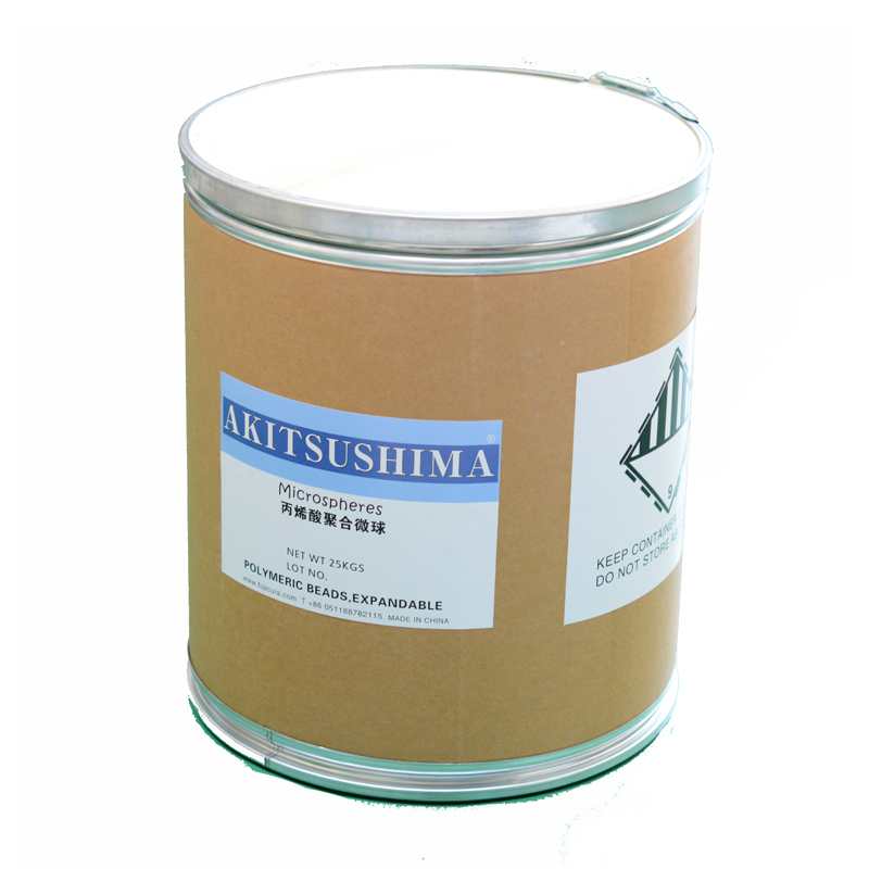 这种特殊的发泡剂是一种核壳结构,外壳为热塑性丙烯酸聚合物,内核为烷烃气体组成的球状塑料颗粒。它的直径一般在10-30微米。聚合物壳体的厚度在2-15微米,壳体有良好的弹性并可承受较大压力,在加热膨胀之后发泡剂自身并不破裂,同时保持自身的良好性能。可膨胀微球受热后聚合物壳体变软同时壳体内气体膨胀,壳内的碳氢化合物在很短时间内膨胀为原来体积的20-50倍。发泡后的微球外壳并